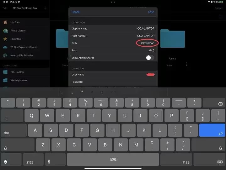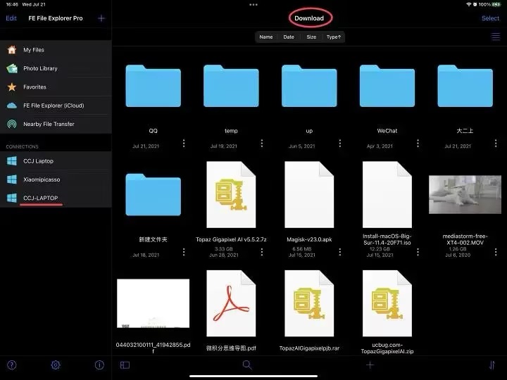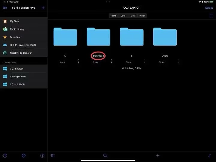 连接成功后就会弹出电脑的共享文件夹列表,这一级界面是无法储存文件的,文件只能存放在子文件夹里。我想要将“隔空投送”接收的文件存放在下载文件夹,注意名称。