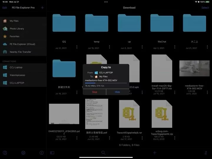 我们拖拽一个文件看看速度。