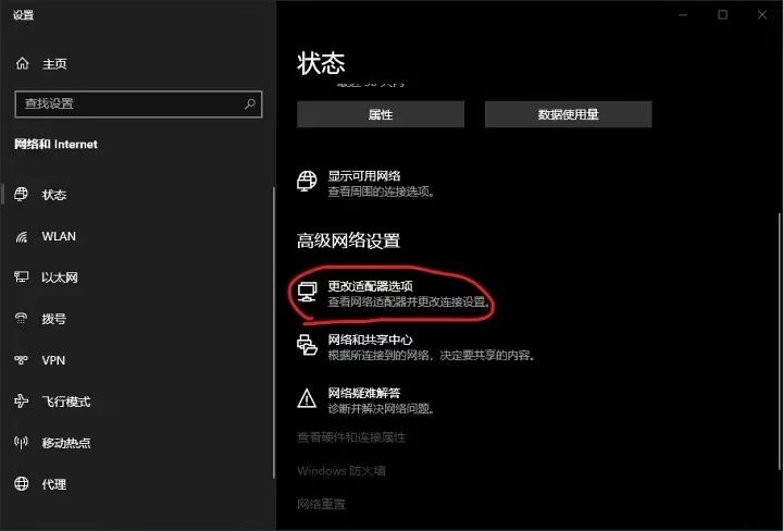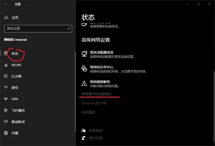 在Windows的网络设置里,查看连接属性。