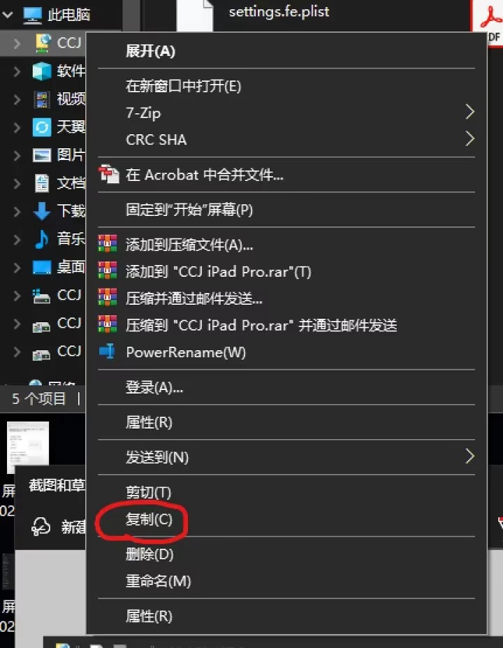 右键复制iPad文件夹。