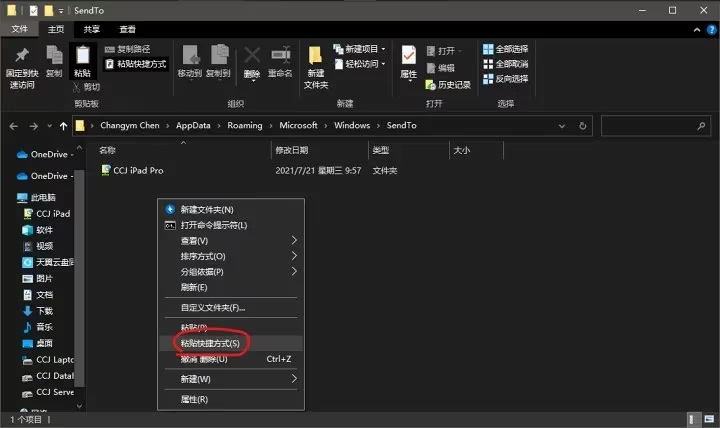 接下来在文件的右键发送菜单中,创建iPad文件夹的快捷方式。Win+R,输入以下命令。