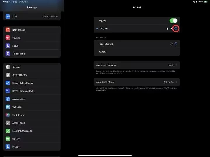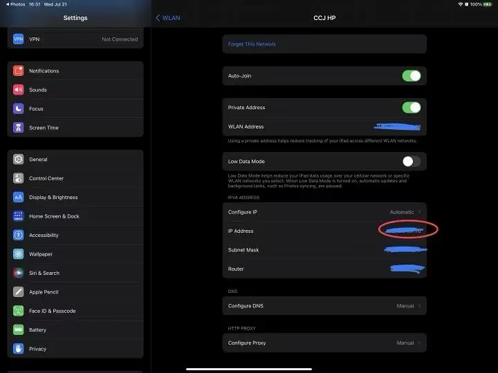 在iPad上打开设置,如图获取IP。