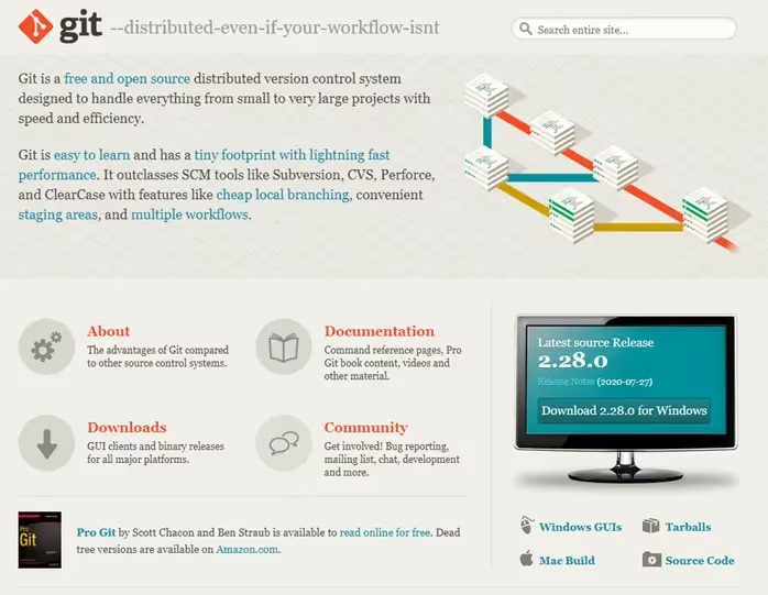https://git-scm.com/ ,网页应该会自动识别你的系统版本,直接点击右下角的显示器Download就行了。