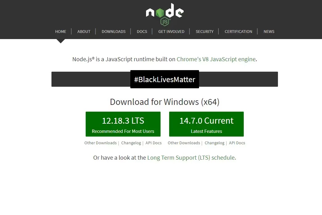 https://nodejs.org/ ,网页应该会自动识别你的系统版本,直接点击绿色按钮下载就行了。(LTS是稳定版,Current是最新版)