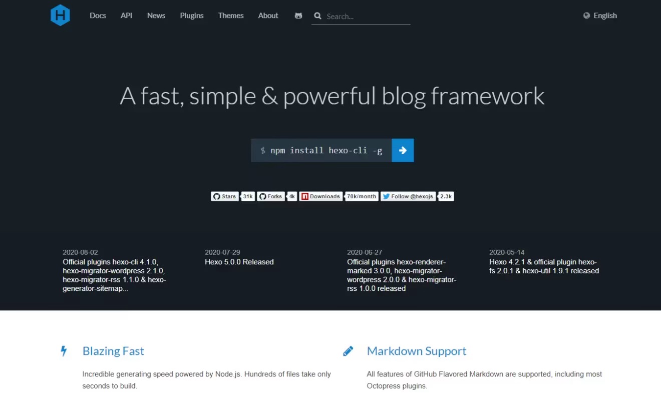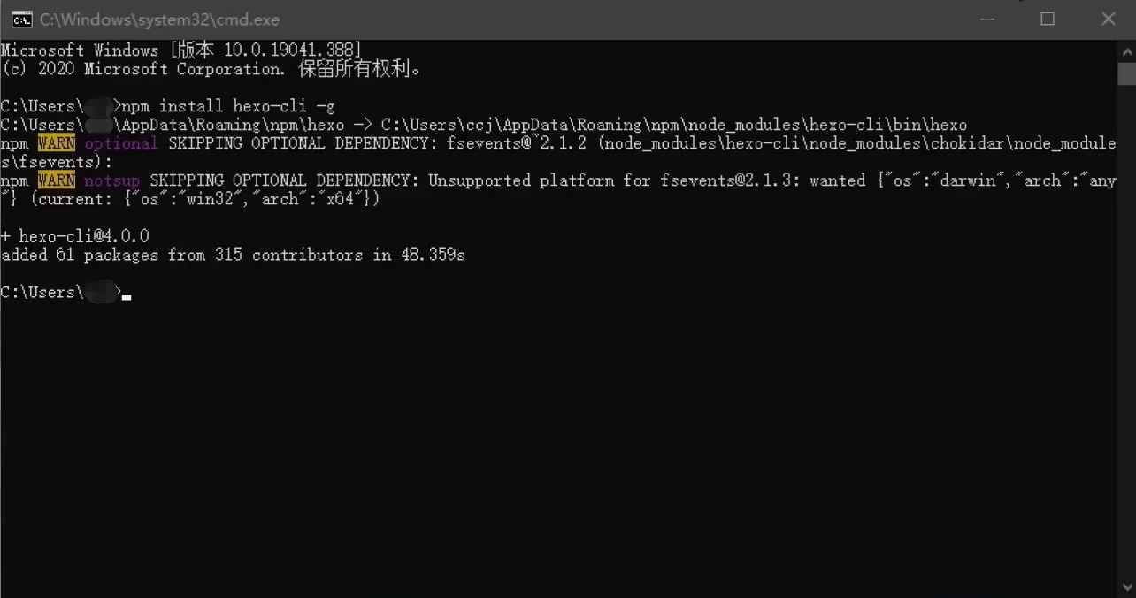 https://hexo.io/ ,复制命令npm install hexo-cli -g。