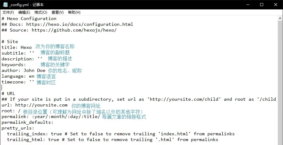 ④打开_config.yml,介绍几项基础的自定义。(主题会在今后的进阶篇介绍)