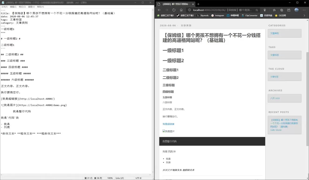 PS:*.md文件是Markdown文件格式,即Hexo使用的主要语法,今后在写文章时需要使用Markdown语法写作(如果不熟悉Markdown语法,可以安装Markdown Pad 2这款编辑器,支持通过按钮自动添加Markdown语法)