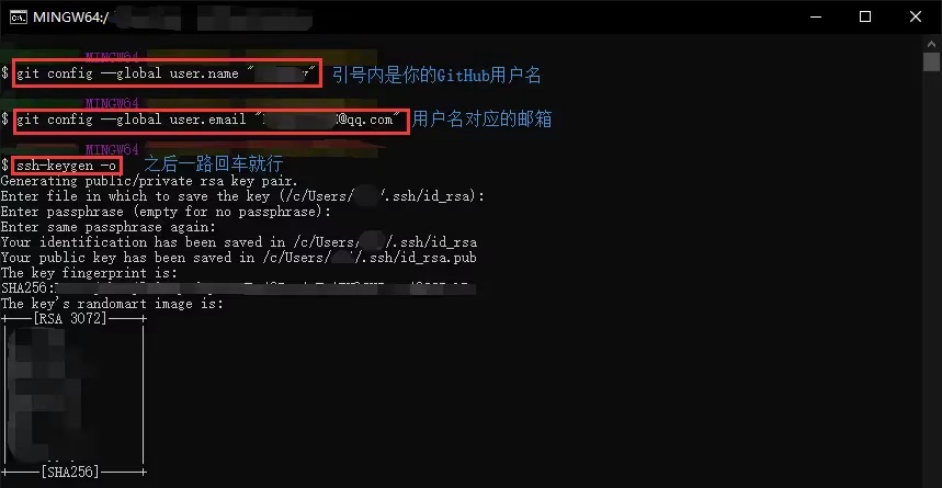 ⑤随意打开一个文件夹,右键Git Bash,依次执行以下命令。