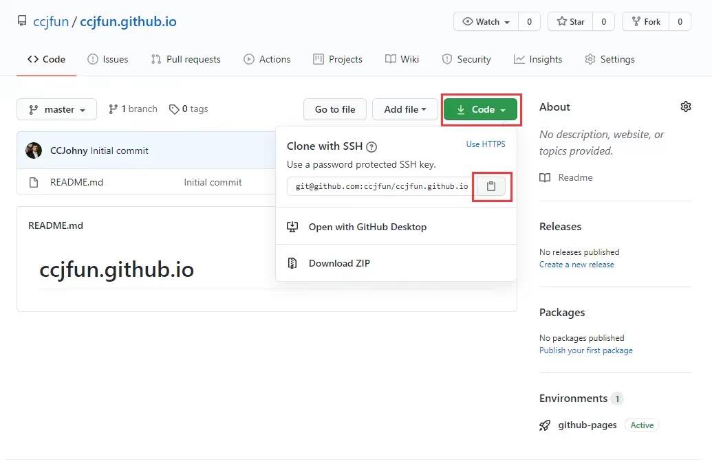 ⑨在GitHub仓库主页点击Code,复制仓库的SSH链接。
