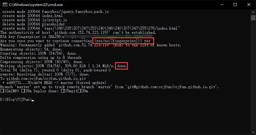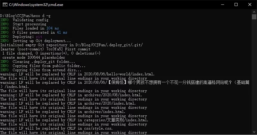 11.在博客文件夹根目录打开终端,执行hexo d -g