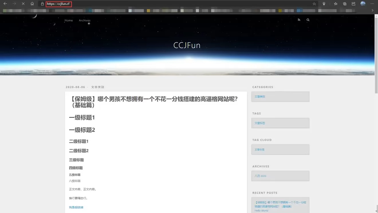 13.在浏览器刷新一下,一个属于你自己的网站已经上线了!