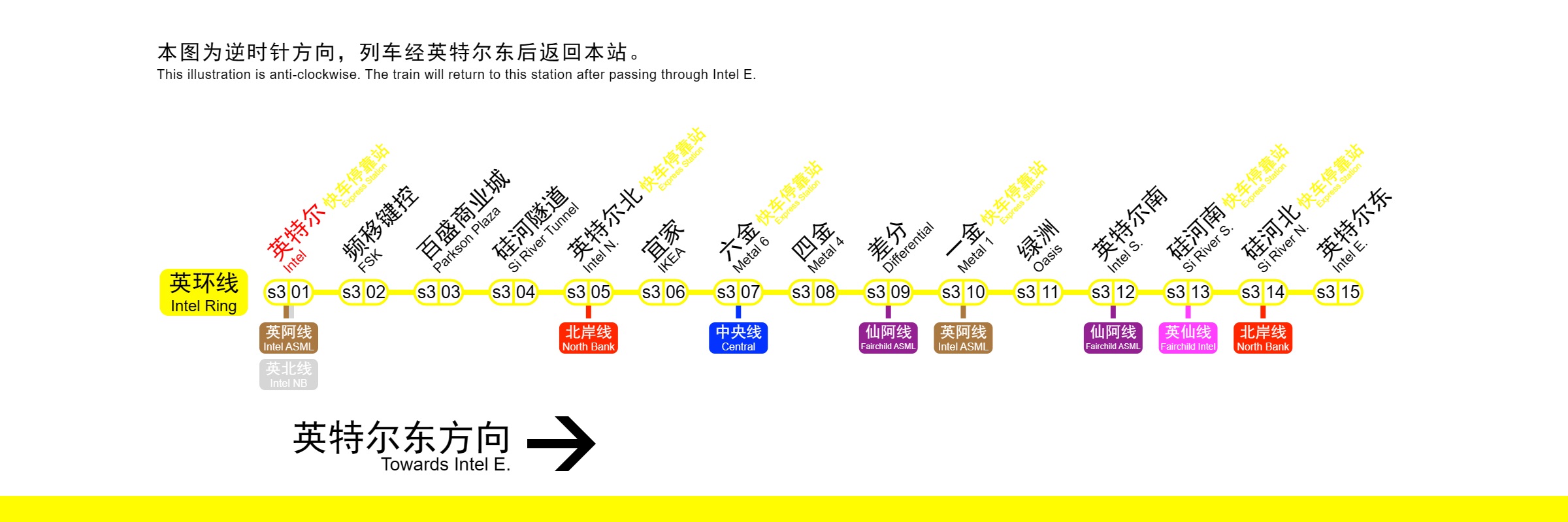经过数月规划以及两年来的建设,全新硅港轨交系统一期已建设完成。目前全新线路图如下: